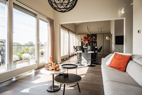 Appartement: je komt binnen via de hal, hier bevindt zich het toilet met fontein en de badkamer voorzien van inloopdouche en wastafelmeubel. Via de hal kom je in de studio met moderne open keuken, welke is voorzien van diverse inbouwapparatuur. Trap naar vide. Het gehele pand inclusief de appartementen zijn in 2018 volledig gerenoveerd en gerestaureerd.